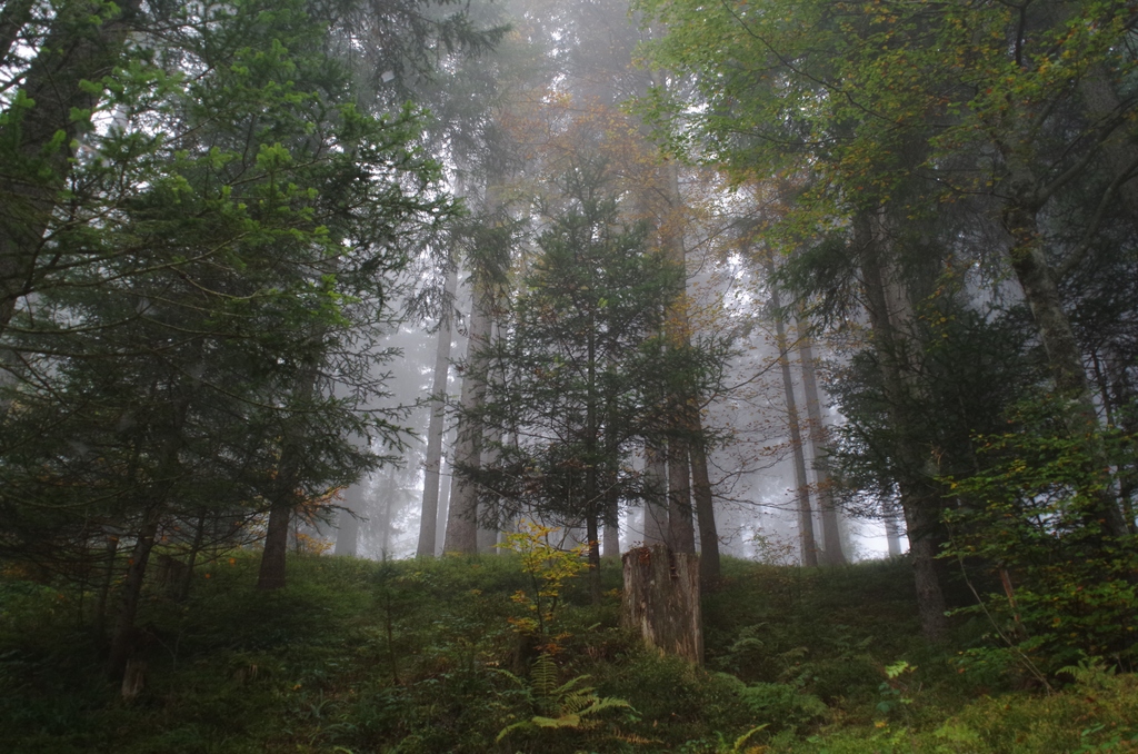 Nebel im herbstlichen Wald