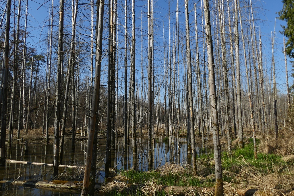 Abgestorbene Baeume im Biberwald bei Marthalen