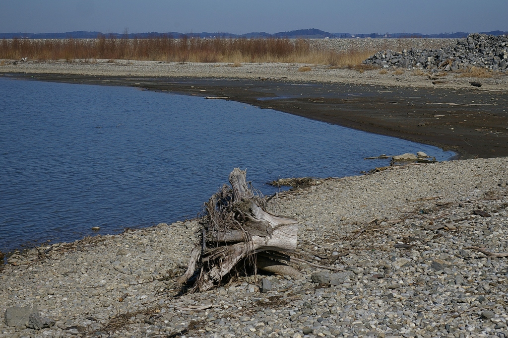 Bodenseeufer beim Glashaus mit Schwemmholzwurzel