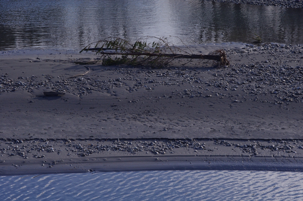 Rhein bei Ruggell mit angeschwemmtem Baum