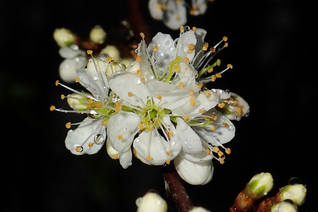 Rosaceae, Prunus spinosa, Schlehe, Blueten