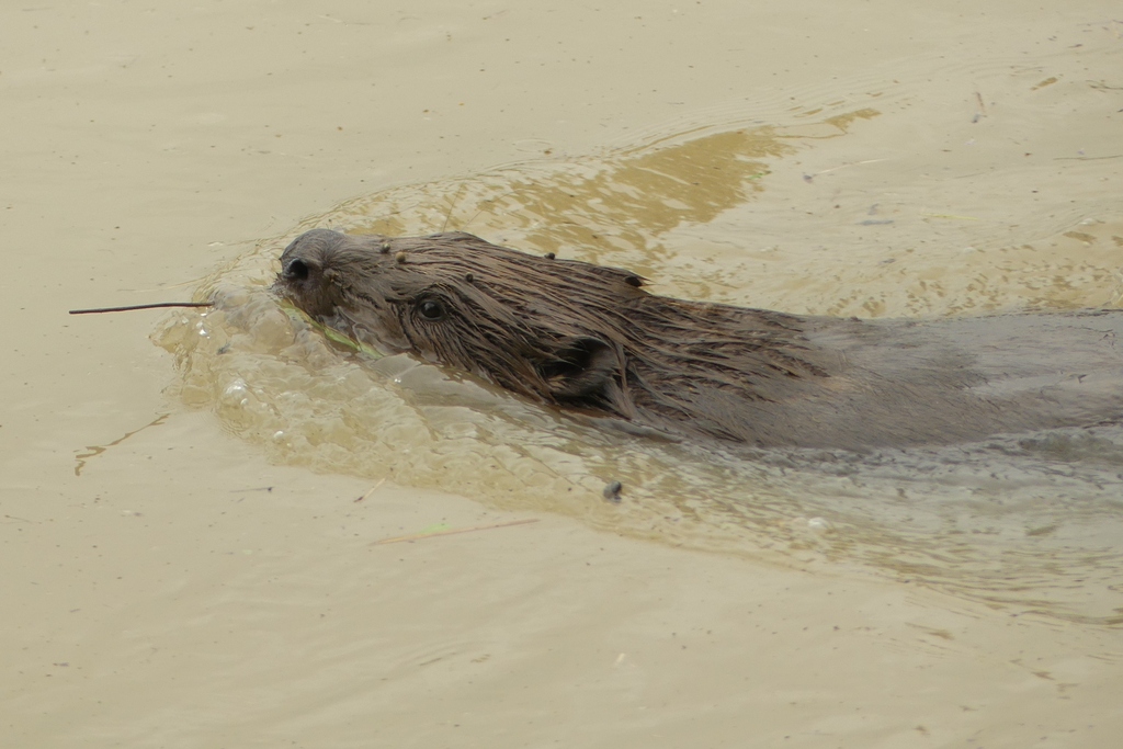Castoridae, Castor fiber, Biber bei Thur-Hochwasser