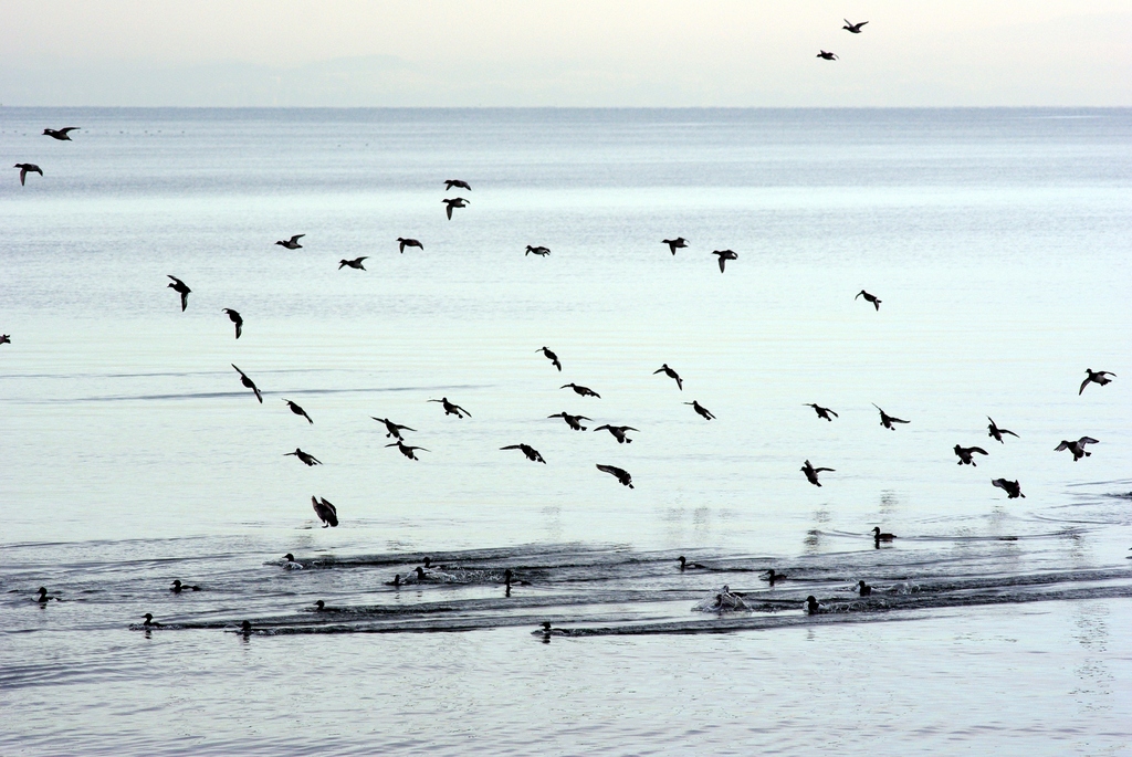 Anatidae, Aythya fuligula, Reiherenten im Flug