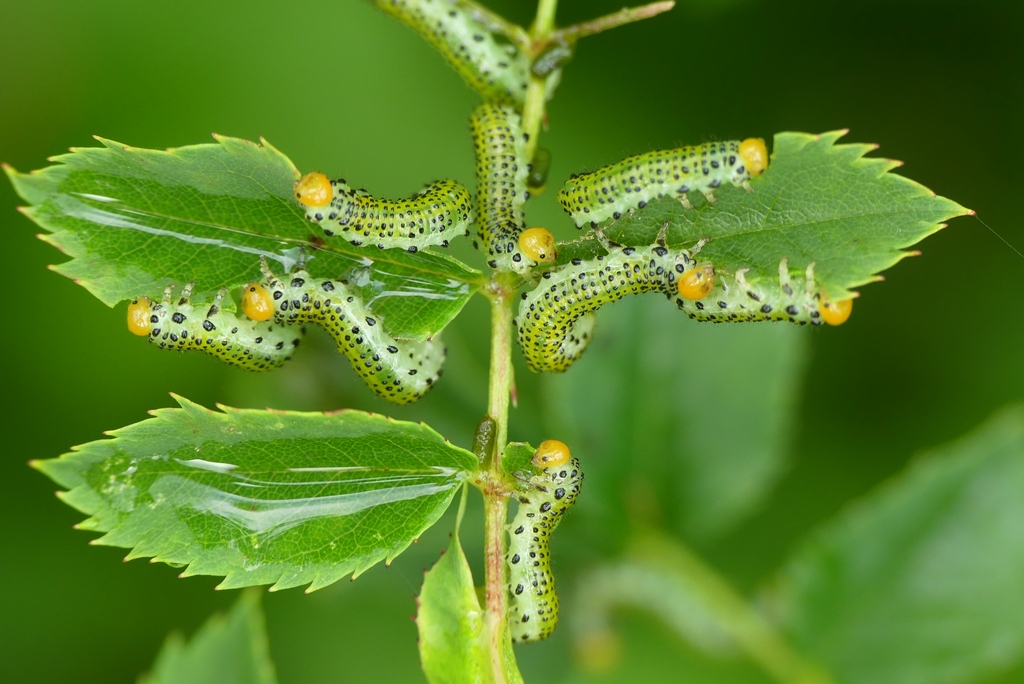 Hymenoptera, Thenthredinidae, Blattwespenlarven an Rose