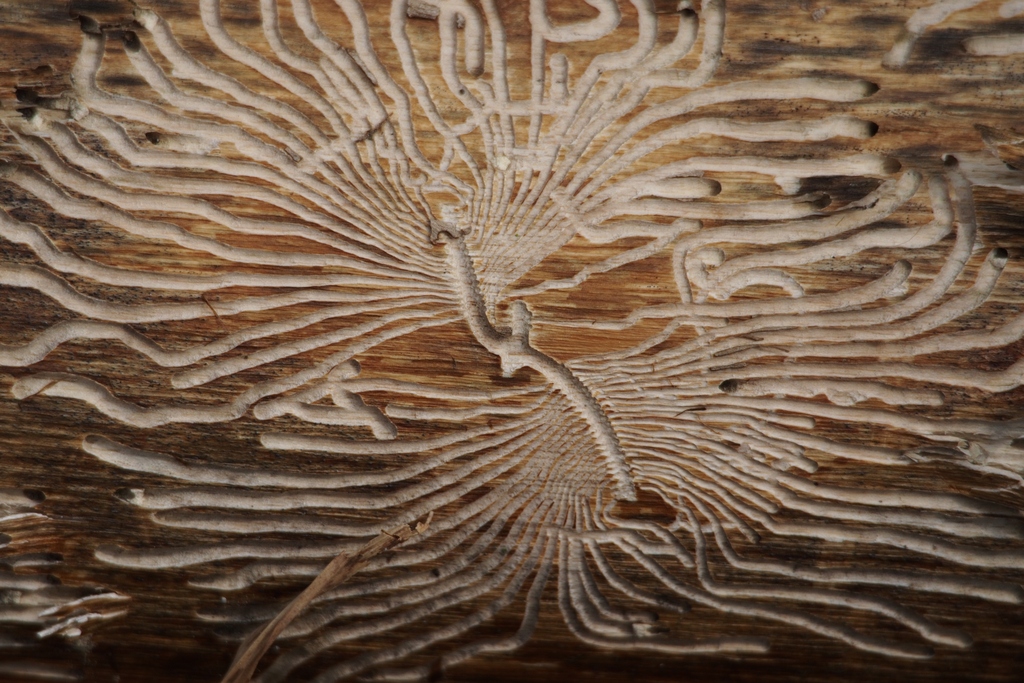Coleoptera, Curculionidae, Borkenkaefer-Spuren