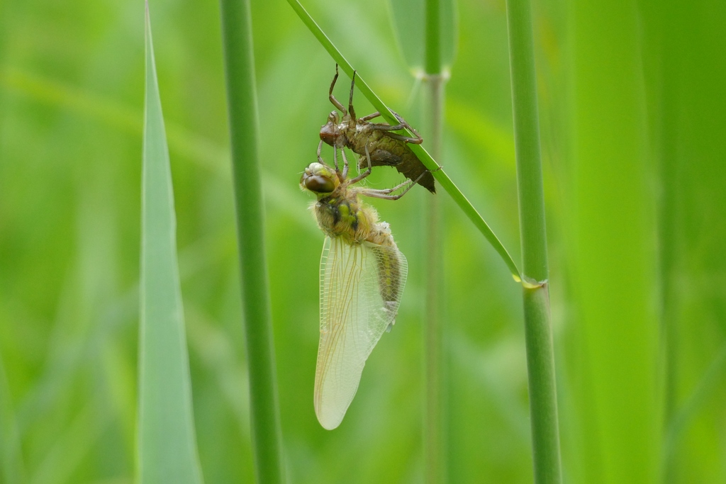 Odonata, Libellulidae, Libellula quadrimaculata, Vierfleck, schluepfend
