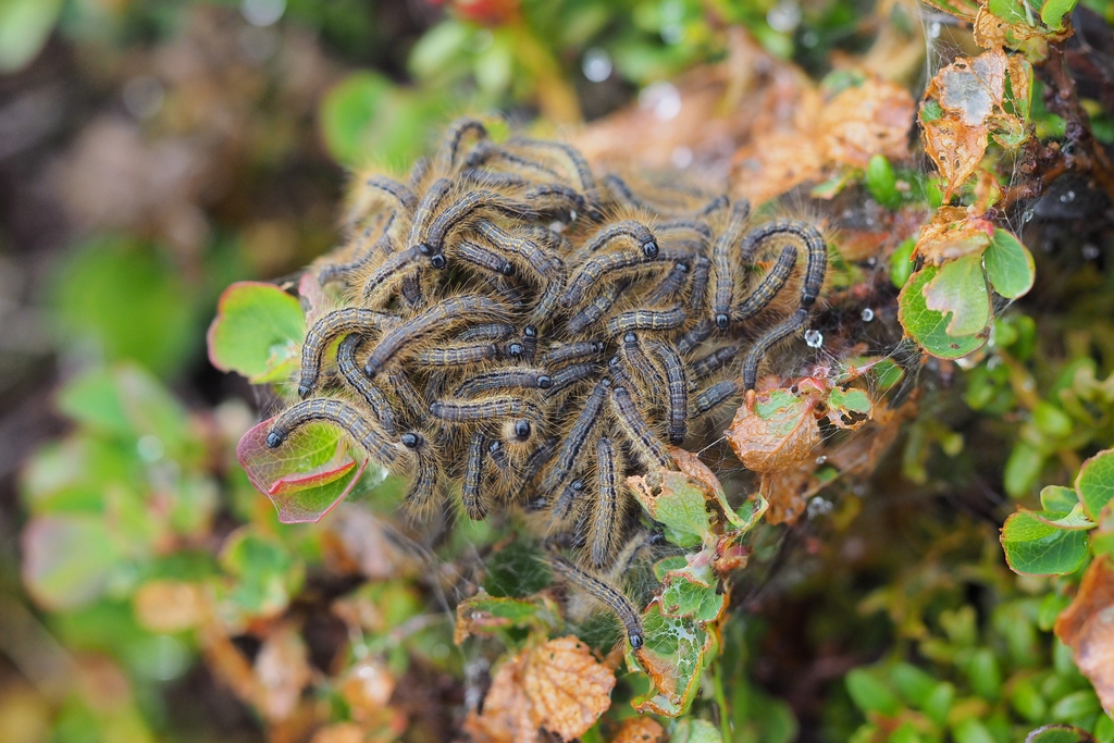 Lepidoptera, Lasiocampidae, Malacosoma alpicola, Alpen-Ringelspinner, Larven